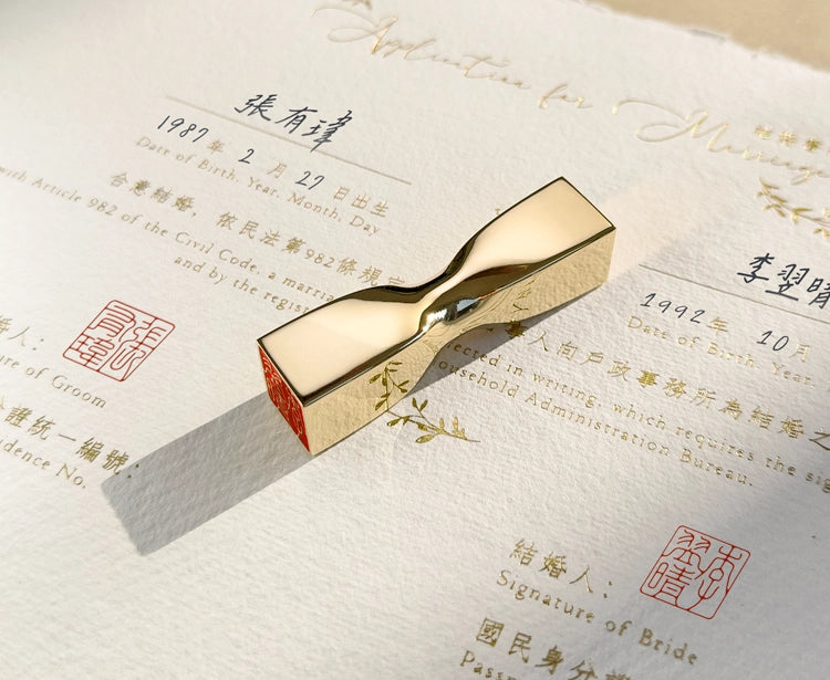 結婚雙面印,篆刻家以巧手繪製妳最喜愛的篆體,再經精細刻字和精心拋光,化為雙方獨特的珍寶信物,見證愛情獨一無二的奇蹟。